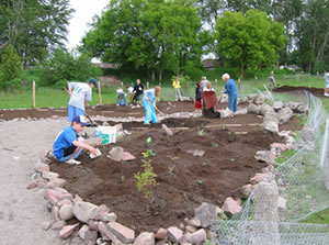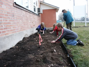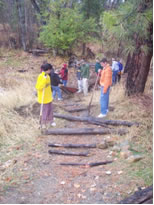 Florence Carlton students building part of a nature trail in the outdoor classroom.
