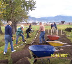 Arlee School Staff constructing the native plant garden